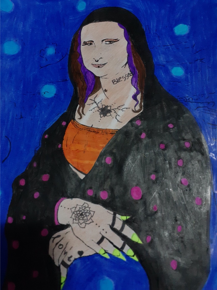 O educador conta que a a ideia da atividade surgiu através das aulas sobre o Renascimento e documentários sobre o pintor Leonardo da Vinci. “Comentamos sobre a obra Monalisa, toda a história e trajetória dessa arte tão comentada, e fiz uma pergunta: como seria a Monalisa nos dias de hoje? Como seria a imagem? Os alunos se motivaram e demonstraram serem muito criativos, foi uma experiência bastante gratificante”, explica.