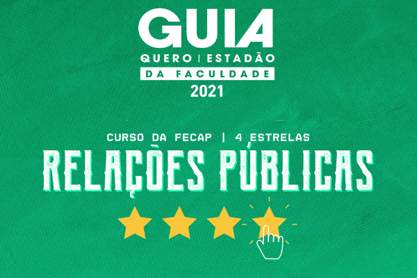 “As estrelas obtidas no guia são o resultado dos pareceres de outros professores, de outras escolas. Trata-se de uma crítica altamente especializada. Ser reconhecido por profissionais da educação no ensino superior com tamanha nota é um indicativo muito potente para o curso”, avalia a coordenadora Paula Franceschelli de Aguiar Barros. O curso de Relações Públicas da FECAP conta ainda com nota 4 no ENADE e nota máxima no Ministério da Educação e no Índice Geral de Cursos.