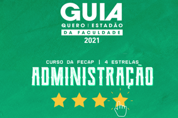 O curso de Administração da Fundação Escola de Comércio Álvares Penteado (FECAP) conquistou 4 estrelas no Guia da Faculdade Estadão Quero Educação 2021. O resultado atesta o nível de qualidade do curso, que já conta com nota máxima no ENADE, de forma consistente.