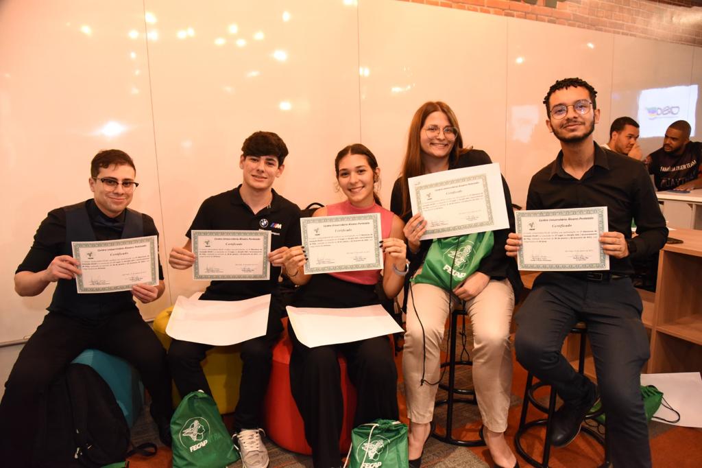 1º Lugar: FECAPERS (Guilherme de Amorim Medeiros, Heitor Teles Antunes, Vitória Gonzaga Limas, Marcelly Niccole Bosso, Diogenes Gabriel Oliveira Ferpa), foram premiados com 50% de desconto em curso de Pós-Graduação ou MBA ou Segunda Graduação + Voucher de Curso de Extensão (30h) + Kit FECAP.