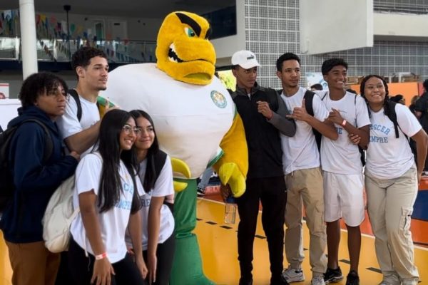 Além disso, o mascote da FECAP, o Escorpião, também marcou presença e se tornou uma atração à parte. Animando o evento e tirando fotos com os participantes, o mascote contribuiu para criar um ambiente descontraído e acolhedor, tornando a experiência dos visitantes ainda mais memorável.
