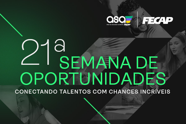 Entre os dias 08 e 12 de setembro de 2025, a Fundação Escola de Comércio Álvares Penteado (FECAP) realiza a 21ª Semana de Oportunidades, iniciativa promovida pela Área do Sucesso Alvarista (ASA) que aproxima estudantes e empresas em busca de novos talentos.