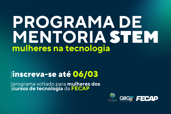 O STEM Women Network está com inscrições abertas para seu Programa de Mentoria em parceria com a FECAP, iniciativa voltada a estudantes da área de tecnologia que desejam desenvolver sua trajetória acadêmica e profissional com maior direcionamento estratégico.