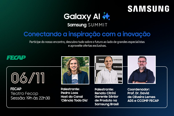 A FECAP (Fundação Escola de Comércio Álvares Penteado) em parceria com o SAMSUNG GALAXY AI SUMMIT têm o prazer de sediar o evento “GALAXY AI SUMMIT – Inteligência Artificial”.