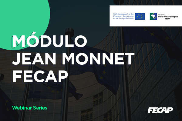 O Módulo Jean Monnet FECAP está promovendo o 4° ciclo de Webinários para discutir os Reports Temáticos dos cinco eixos de estudo: União Europeia como ator global; Democracia, Direitos Humanos e Justiça Internacional; Segurança Regional e Internacional; Comércio, Investimento e Negócios; Energia, Mudanças Climáticas e Desenvolvimento Sustentável.