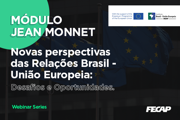 O Módulo Jean Monnet FECAP está finalizando o segundo ciclo de webinários da série “Novas Perspectivas das Relações Brasil-União Europeia: Desafios e Oportunidades”, com o apoio dos Fundos Erasmus+ da União Europeia. Neste evento, concluiremos as discussões sobre os seguintes temas: Segurança Regional e Internacional e Comércio, Investimentos e Negócios.