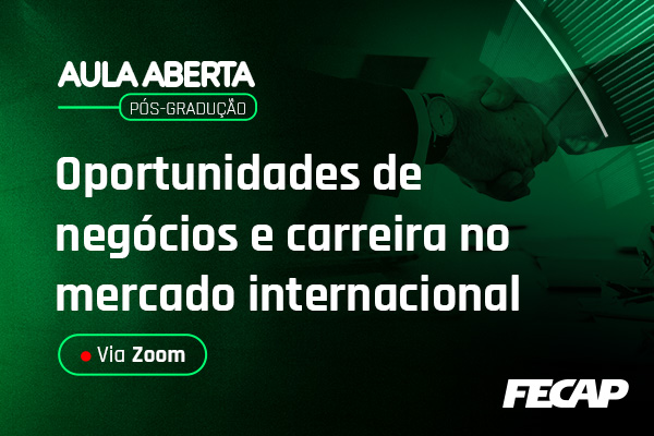 Convidamos você para participar da aula aberta ” Oportunidades de Negócios e Carreira no mercado internacional ” que acontecerá no dia 18 de abril às 12h, vinculado ao curso de pós-graduação em Négocios Internacionais e Comercio Exterior com transmissão ao vivo via Zoom.