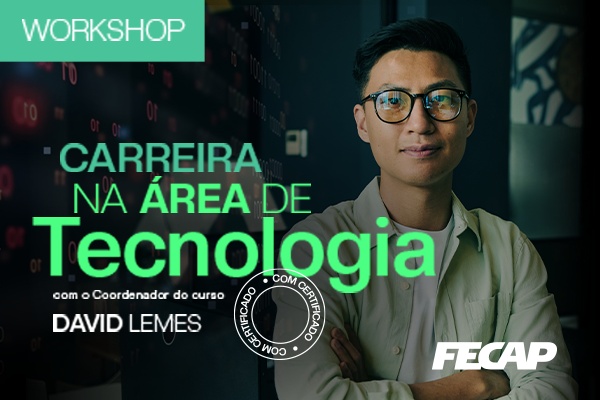 O evento será conduzido pelo Professor e Coordenador dos cursos de Tecnologia da FECAP, David Lemes, que compartilhará sua experiência e insights sobre as tendências do mercado, habilidades essenciais e caminhos para se destacar na área.